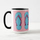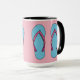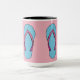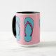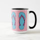 Un ilustracion con un par de chanclas rosas y azules. ¡Es verano! Tomemos un descanso y nos divirtamos un poco bajo el sol. ¿No estás emocionado de preparar todas tus cosas para las vacaciones? No olvides tus chanclas.