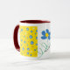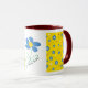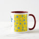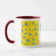 Este patrón rojo, amarillo, azul y blanco es una taza brillante y alegre para personalizar. Ideal para adultos o niños. El color de la taza interior puede cambiarse.