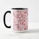 Ramas de cerezo blanco pintadas con acuarelas y tinta sobre fondo rosa