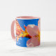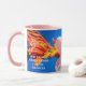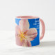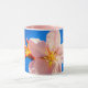 Vista en primer plano de una excelente flor de cerezo japonesa rosa o sakura. Cielo azul profundo en el fondo. Día soleado de primavera. Hermosa taza de café personalizable. Puedes cambiar la imagen y puedes cambiar o eliminar el texto del haikú del template. Puedes transferir este diseño a una variedad de otros productos, incluyendo taza de latte, taza de vidrio, jarra, tetera, tazón de chili, frasco de dulces, botellas de agua, velas. Simplemente elige el producto de la opción desplazable "Transferir diseño a un producto". No te olvides de usar el botón "Personalizar" o "Editar diseño", o el enlace azul "Detalles" --> "Haz clic para personalizar aún más" --> "LLENAR/AJUSTAR" para AJUSTAR EL DISEÑO AL TAMAÑO Y FORMA del producto, para rotarlo, cambiar la posición, tipo, color