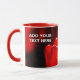 Flor de Tulipanes Rojos - Fuego. Flores de tulipán rojo iluminadas por la luz del día sobre un lecho de flores. Color rojo brillante. Fondo oscuro. Juego de luz y sombra. Tazón de fuego. Un tazón de café para cualquiera. ¡Personalizable. Puede cambiar la imagen y puede cambiar o eliminar dos textos de plantilla.
