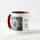 Taza Flor morada de cerdo con texto negro: ten un buen