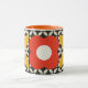 Taza Flor retro, patrón geográfico rojo y amarillo