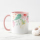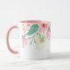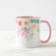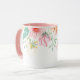 Esta taza floral tiene hermosas imágenes pastel de flores alrededor del borde superior de la taza. El interior de la muestra mostrada es rosa.