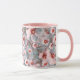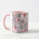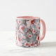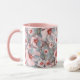 Flores rosas y delgadas con centros dorados se organizan en un entorno suave y pastel. Las frondosas hojas verdes se entremezclan elegantemente entre las flores, creando un patrón floral armonioso y sereno.