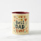 Muéstrale a tu papá que es el "mejor papá de la historia" con esta encantadora taza. El diseño está decorado con letras pintadas a mano y rodeado de ilustraciones dulces florales y cardíacos en tonos cálidos y tierra sobre un suave fondo beige. Una manera cariñosa y artística de expresar tu aprecio y celebrar el Día del Padre con un regalo verdaderamente especial.