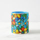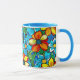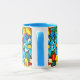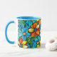Una taza combinada con un patrón floral audaz y multicolor en ricos azules, rojos, amarillos y verdes, ideal para alegrar los rituales diarios de café y regalar a cualquiera que ame la vajilla artística y alegre con un aspecto premium y edificante.
