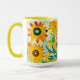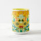Flores de arte folclórico amarillo y turquesa taza de café.