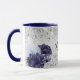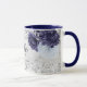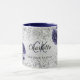 Taza Flores azul marino plateado nombre elegante monogr