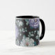 Taza Flores azules y de lavanda con hojas verdes pálida