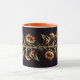 TAZA FLORES CON HOJAS VERDES EN NEGRO