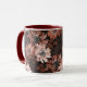Taza Flores de crema y teracote en un fondo marrón oscu