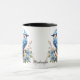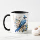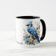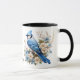Esta es una taza de bonito para cualquiera, con la imagen de un hermoso Jay Azul encaramado en una rama florida. Detrás de las imágenes de las aves hay un rastro de purpurinas falsos de oro y remolinos. La imagen se repite dos veces en la taza, con tu nombre en negro entre ellos. ¡Una escena de la naturaleza en primavera de bonito!