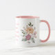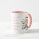 Esta elegante taza es perfecta para un mejor amigo que te acepta por quién eres, tiene un hermoso ramo de flores, bayas y hojas sobre un fondo blanco y una encantadora cita de amistad de una persona desconocida con un tipo de letra rosa claro: Un amigo es el que domina tu cerca roto y admira las flores en tu jardín.
