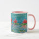 Dibujo de flores de loto rosas y azules, arte ingenuo.
