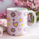 Taza Flores retro Patrón cardíaco rosa, morado, amarill