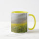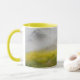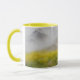 Taza Flores silvestres amarillas Campo Foggy Montañas A