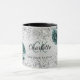 Taza Flores verdes plateadas nombre elegante de monogra