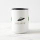 ¡Una taza graciosa con cabezas verdes alienígenas, platillo volador y un mensaje de personalizable "Believe"! ¡Perfecto para el desayuno!