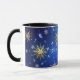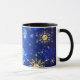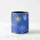 Navidades azules con copos de nieve de oro y joyas blancas. Copos dorados de nieve. XMAS.