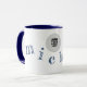 Añade cada una de las letras de tu nombre a las plantillas para crear una taza azul elegante y personalizada, con tu foto especial... para él o para ella.
