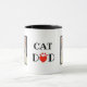 Este bonito, moderno y único diseño presenta dos fotos personalizadas a ambos lados de la taza. La cita "Papá Gato" con una pequeña pata de color rojo dibujada a mano en forma de corazón aparece en el centro de la taza. La moderna y moderna tipografía hace que el diseño sea divertido, único y especial.