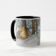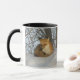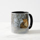 Maravilloso acercamiento con la escena invernal de colina cubierta de nieve y zorro descansante enmarcado por árboles.