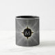 Esta taza combinada monogramada presenta un arte fractal abstracto en tonos grises y negros oscuros.