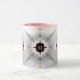 Esta moderna jarra femenina presenta un arte fractal simétrico abstracto en gradiente rosa y plateado (gris). Personalízalo con un monograma en un color rosa que coincida.