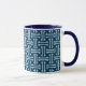 Art Deco Chino Fretwork patrón café taza en índigo oscuro / azul marino y azul cielo claro