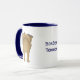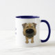 La taza de Terrier de frontera con una vista delantera de la nariz grande de una frontera Terrier en un lado de la taza y su extremo posterior adorable apoyan la opinión sobre el otro lado de la taza. Los colores y el texto del fondo pueden ser cambiados. Apenas haga clic en el personalizar él botón.