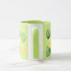 Esta taza de café de dos tonalidades tiene ilustraciones de acuarela de rodajas de naranjas, limones y limas sobre un fondo verde sólido. El interior de la taza y de la manija también son verdes.