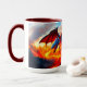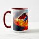 Un dragón vuela a través del cielo y reina el fuego a través del paisaje y la aldea.