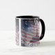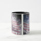 Disfrute de sus bebidas calientes en esta taza patriótica, que muestra la bandera original de 13 estrellas y el Salón de la Independencia sobre un fondo de fuegos artificiales.