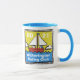 Mug de souvenir de Fun Sailing Club. Imagen gráfica brillante y audaz para los miembros del club náutico. Personaliza con tu propio nombre de club. Imagen y texto repetido en ambos lados de la taza.