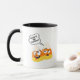 Este lindo diseño de Halloween Candy Corn muestra un maíz dulce diciéndole al otro "No seas corny" mientras haces una cara tonta. Disfruta de tu bebida caliente favorita en la temporada de otoño con esta linda taza de Halloween.