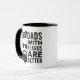This funny mug is the perfect gift for the bearded dad in your life! The design features a black graphic of a dad sporting sunglasses and beard, accompanied by the quote, "Dads with beards are better."