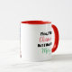 Navidades divertidos citan: "Bien, haré Navidades, pero no haré Merry". Adorable lindo y pequeño elfo gruñón haciendo juguetes en un canto de Navidad de día de Navidades nevados.