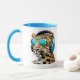 A cute funny cat coffee mug featuring a leopard wearing headphones and sunglasses.
