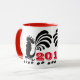 Silueta negra doble de Roosters en una taza de dos tonos de personalizable. Puede cambiar fácilmente la posición y el tamaño del diseño haciendo clic en el botón personalizar o personalizar. Perfecto para el Año Nuevo Chino 2017 o para el cumpleaños (personas nacidas en Año de los gallos).
