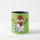 An illustration of a snowman with a red cap, red gloves and a soccer football ball. This design is a combination of Christmas and sports spirit. Celebrating Christmas brings family together with good food and a good chat while sports brings family best bonding. If you are a winter lover, snow lover, and soccer or football lover then this drawing is for you.