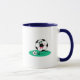 Balón de fútbol lindo del dibujo animado que juega a fútbol y que golpea una bola con el pie más pequeña. Imagen disponible en los diversos regalos y productos. Tazas.