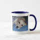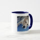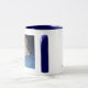 Taza de café amarilla del laboratorio con la manija y el borde azules. La etiqueta de Copyright en la parte posterior así que ella no perturba la imagen.