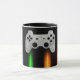 El controlador de videojuegos Neon Colours Black Mug. Controlador de juegos con luces de neón de colores vivos sobre un fondo negro. Genial para un jugador de verdad.
