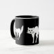 Esta imagen de Halloween de un gato divertido con el suyo detrás arqueó en sorpresa y luce increíble del choque contra el fondo negro de esta taza fresca del té o de café de Halloween de la calidad, estoy seguro que cualquier persona que reciba esta taza divertida original del negro del gato para Halloween será sorprendido agradable.