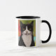 Pintura digital moderna de un gato lindo, blanco y negro del smoking con un fondo colorido. Pintado en Photoshop CS3.