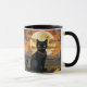 Taza Gato negro bajo una luna de cosecha y calabazas