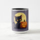 Un diseño adorable y espeluznante con un gato negro sentado al lado de una lámpara clásica tallada. Esta taza festiva es el accesorio perfecto para cualquier amante del gato que disfrute de la temporada espeluznante.