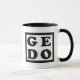 Gedo Coffee Mug. Esta taza de café es un regalo perfecto para cualquier abuelo que se llame Gedo en lugar de Abuelo. (Gedo significa abuelo o abuelo en árabe.) El diseño cuadrado en blanco y negro, que dice Gedo, es sencillo, minimalista, elegante, limpio, moderno y contemporáneo.