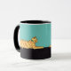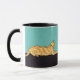 Un gato rojo rayado con un collar verde azulado yace tranquilamente sobre una superficie negra, mirando hacia adelante. El ilustracion se basa en una impresión vintage de Edward Penfield. Puede cambiar el color de fondo haciendo clic en el botón "Personalizar" y, a continuación, en la inscripción "Haga clic en el personalizar más adelante".